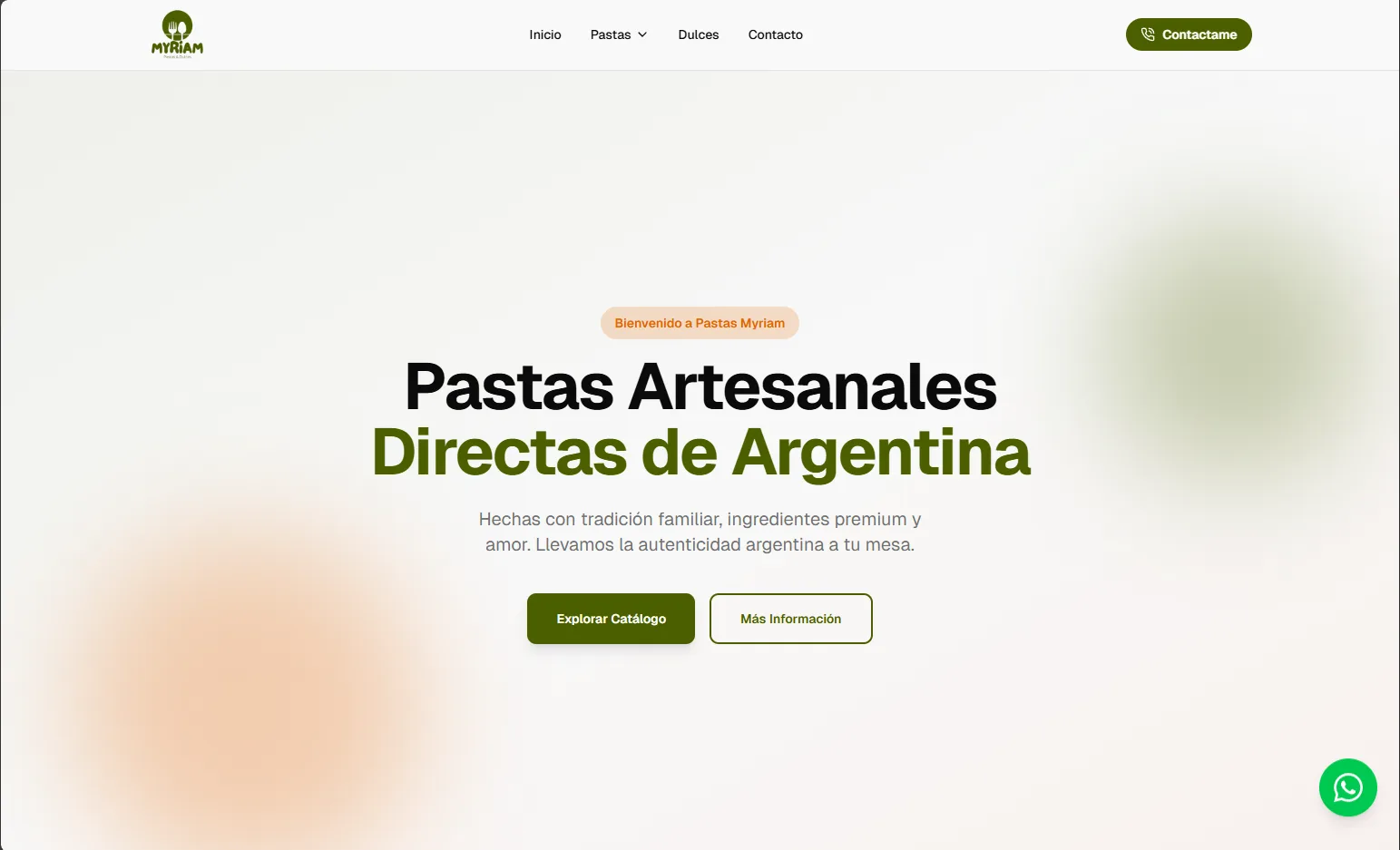 Catálogo digital de pastas frescas con pedidos por WhatsApp. Enfoque en productos artesanales y atención personalizada.
